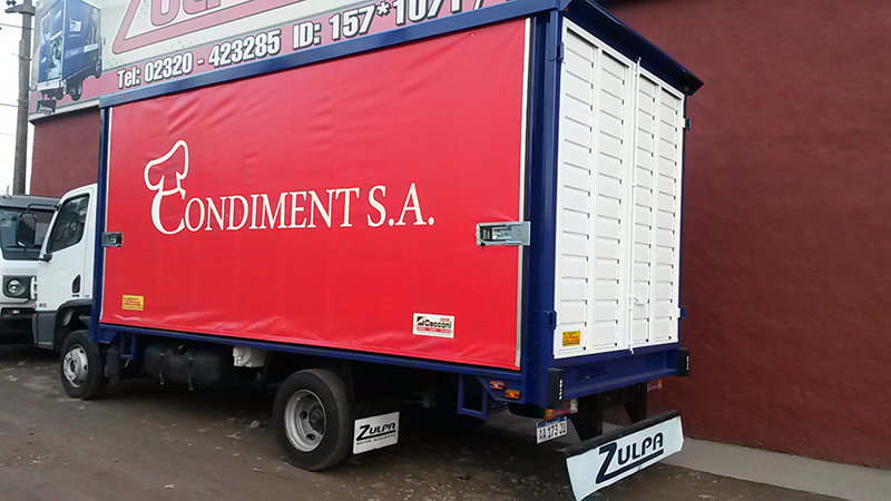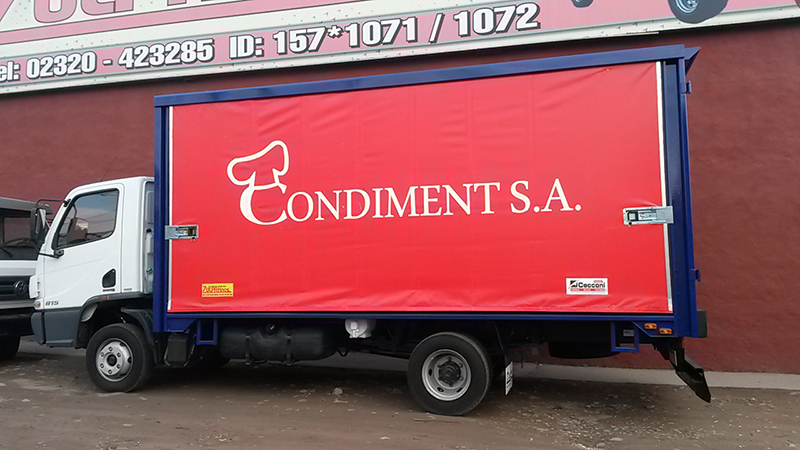 - Las lonas laterales corredizas marca “Cecconi” con enrolladores y hebillas.